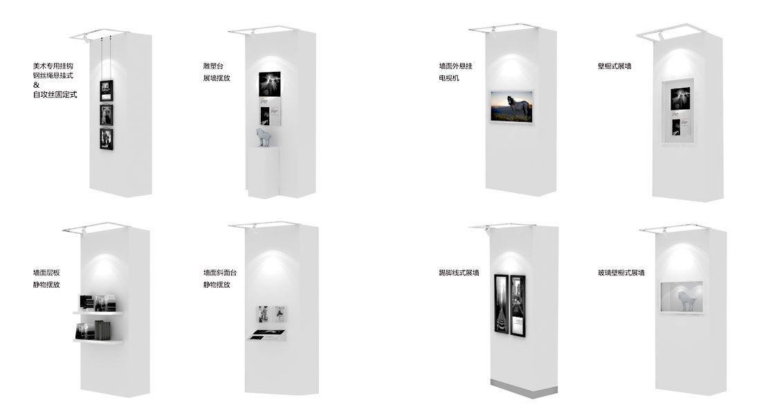 ·固定展墙常见规格:高度2米----4.5米/组(根据客户展厅需求及要求可定制)
